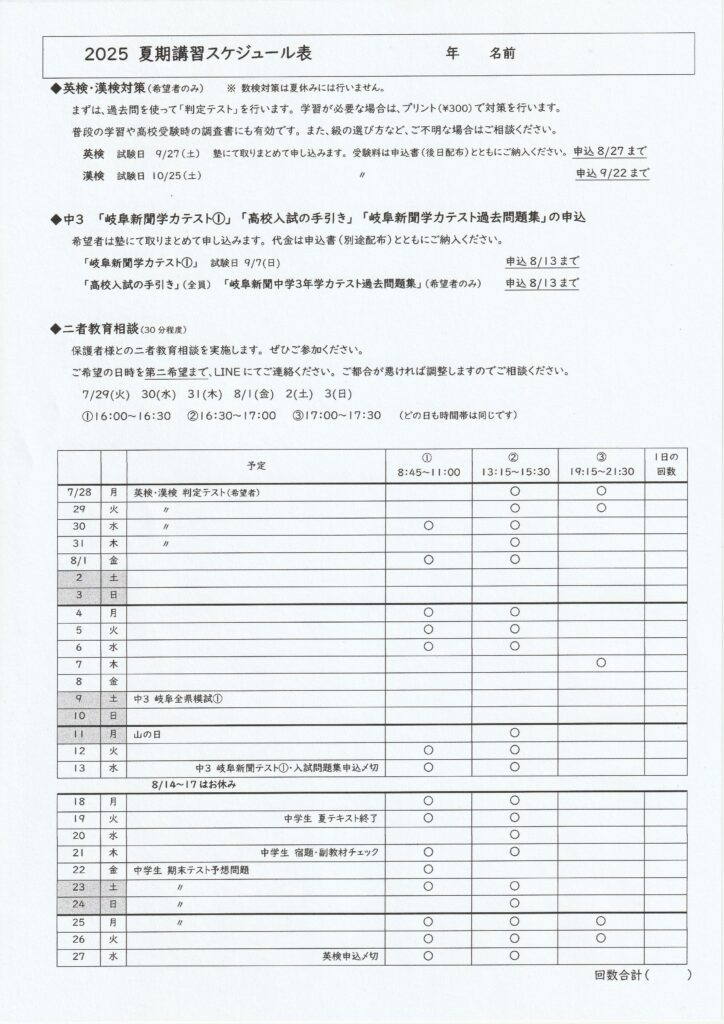 ✔「岐阜全県模試①」 試験日 8/9(土)