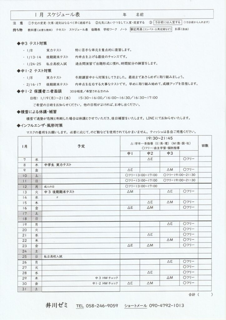 冬休み明けすぐに、実力テストがあります。